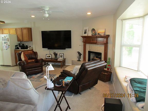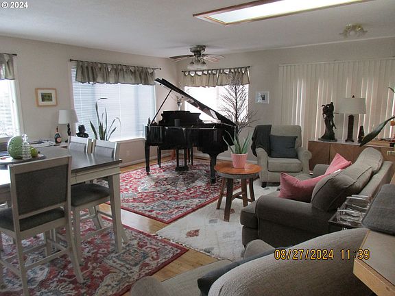 Large West Roseburg riverfront home. Sits above the South Umpqua River at the bend in the river with a view both directions up and down the river. Abundant wildlife. Home is way above the flood plain. This home can be a great two family setup. Both levels have access from the outside, two kitchens, two living areas and a total of 6 bedrooms plus an office.