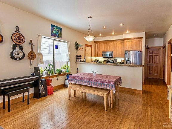 Highly charming and well cared for in-town bungalow/cottage. Enjoy a very short walk to downtown Sisters restaurants and attractions; Village Green Park; or your entry to Mountain Trails at Peterson Ridge Trailhead. A large, private, enclosed upper balcony allows a unique outdoor living environment for enjoying the sites and sounds of Sisters country. Home features concrete countertops throughout, bamboo wood floors, 3 oversized bedrooms (2 with high vaulted ceilings); downstairs master bedroom; open concept floorplan. Great rental or primary home.