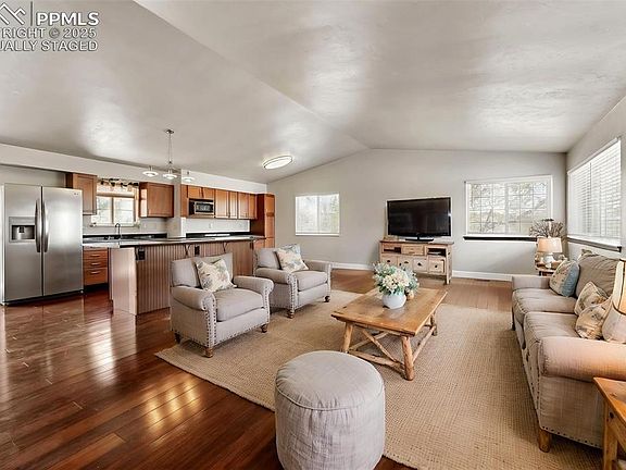 Welcome to this beautifully Updated Rockrimmon Home! This stunning 3-bedroom, 2.5-bathroom, 2-car garage Cul-De-Sac home on the west side of Colorado Springs. Thoughtfully updated with new flooring, paint, and window blinds throughout, this home combines modern updates and spacious, flexible living spaces. It is the perfect balance of style and function, with loads of space to stretch out with over 2600 sqft living space in 4 levels. At the front door, step inside to discover main living space with beautiful wood floors, and vaulted ceilings, modern stretching kitchen with breakfast bar island with granite countertops and natural light coming from all directions, which set a bright and inviting tone throughout. Back door wood deck offers outdoor setting to enjoy the beautiful Colorado summer and fall weather. Anchoring the family room is a farmhouse-style brick accent wall, framing the wood-burning fireplace—an ideal space for cozy evenings and gatherings. Dedicated and spacious laundry room and half bath are convenient as well. Upstairs, two updated bathrooms include a private master ensuite, designed for relaxation, plus two additional spacious bedrooms. Basement is fully finished with walk-out sliding door to side yard with mature trees and xeriscape landscaping. The durable brick and stucco exterior, now refreshed with new exterior paint, ensures lasting curb appeal. Other updates include a new furnace and coming soon: new roof, provide efficiency and peace of mind for years to come. Situated in a prime Rockrimmon location, this home offers easy access to Woodmen Rd. and I-25, making EASY commutes around , to mention the trails and close vicinity to Garden of the Gods outdoors. Whether heading to downtown Colorado Springs, enjoying local parks, or accessing nearby shopping and dining, convenience is at your doorstep. This move-in-ready home blends desirable updates with an unbeatable location—offering the best of west-side living. Schedule your showing today!