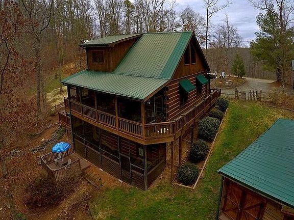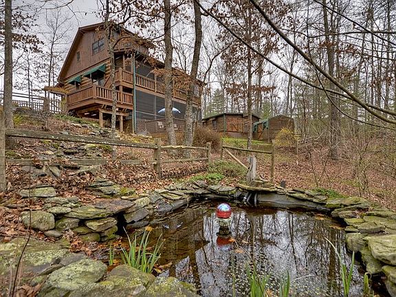 This Daniel Boone, chink log, cabin is certain to soothe you! Situated on over 10 acres ensures your tranquil setting. There are 3 outbuildings one is a barn/workshop. The other 2 are used for storage and projects. There are trails all over the property for hiking, ATV'S or horses. Views all over and other building sites .There are two paddocks for the farm animals and a dog run, small riding arena- Many outdoor entertaining spaces await you.An outdoor fire pit, waterfall and Koi pond and the pristine mountain views! Can you say mini farm or mountain estate?Property is in conservation for lower taxes and conveniently located between Blue Ridge and Murphy, NC.Additional carport for boat or vehicle storage.No drive-byes