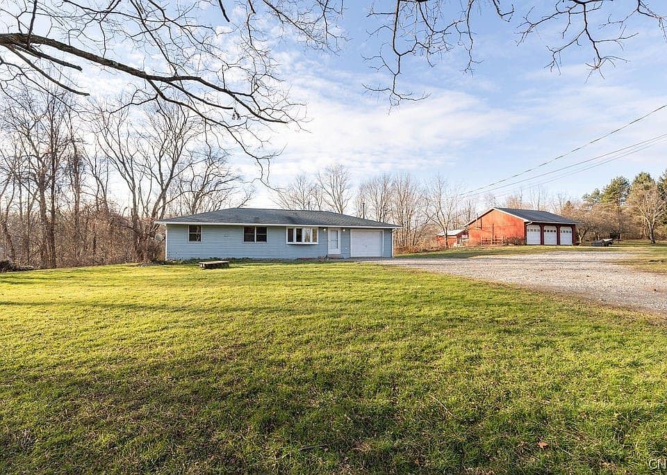 Welcome to 365 Winks Road! Situated on just over twelve acres of land, this home has three bedrooms, 1.5 bathrooms, a tastefully updated kitchen, newly installed luxury vinyl flooring, and more! The attached one car garage has been converted to additional possible living space, which currently has a wood stove that does a majority of the heating for the home, as well as laundry! The front half of the attached garage can be used for additional storage. Additionally, you'll find a large three car garage/pole barn with ample storage, shop space and power, as well as berries, grapes and currants throughout the main yard and perennials planted around the perimeter of the house! Behind the detached three car garage there is a chicken coop with additional space for other animals! This property is just 25 minutes to Oswego and 30 minutes from Syracuse and backs up to the popular Catfish Creek! Showings begin Friday, December 15th at 12pm, negotiations will take place Tuesday, December 19th at 8pm. 2024-02-02