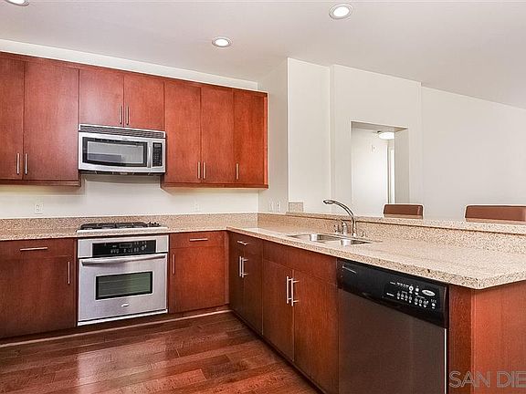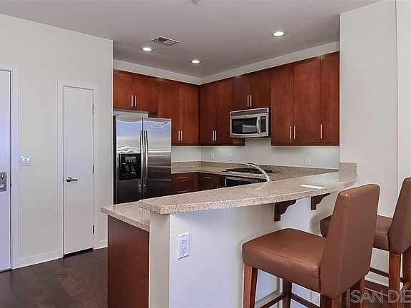 Atlas has one of the best locations in Hillcrest.This FHA/VA approved unit has has a unique balcony that is 200 Sqftt+. Lutron Electric blinds throughout!!! Wired for surround sound, Stainless Steel appliances, granite counter tops, and ceiling fans. Great floor plan with 1 bedroom on either side of the family room. Both bedrooms have good size walk in closets!! Washer and Dryer. 2 detached parking spaces. Amenities include a swimming pool, hot tub, party room, exercise room + Storage locker.