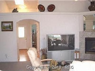 Beautiful 3/3/2 Ranch Townhome with amazing views of the Peak and Front Range! Open Floor plan has vaulted ceilings, arched entries, rounded corner, sky lights and art landings. Main level great room has gas-log fireplace and remote controlled celing fans and lights. Eat-in kitchen has custom shades that frame Pikes Peak! Hardwood entry to kitchen with hot water tap, microwave, new disposal, gas range/oven, and tons of counter and cupboard space with pull-outs. Large main-level master has walk-in closet plus 2nd large closet, and 5-pc bath with oversized corner jacuzzi tub. Formal dining room is walk-out to large deck with retractable awning. Downstairs has third oversized bedroom with private bath, huge l-shaped walk-out family room and loads of storage! Call now for a private showing!