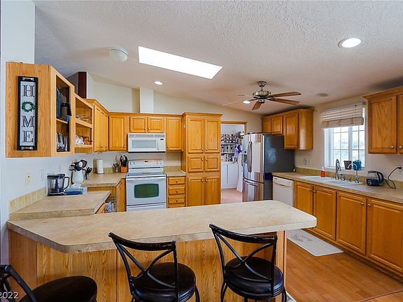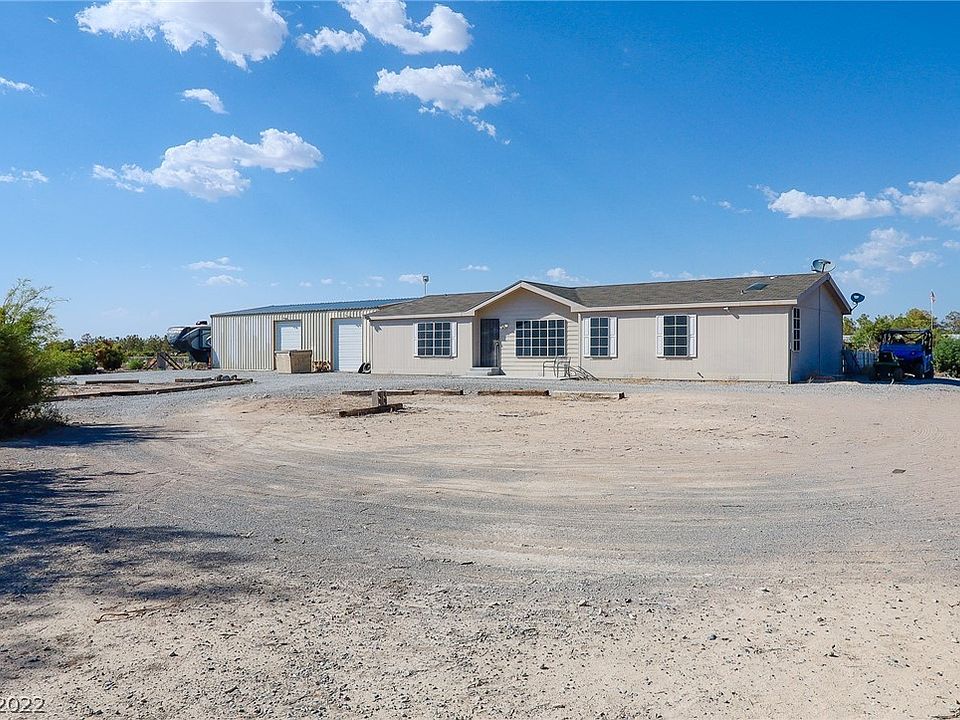 WOW! On over 2.2 acres, surrounded by mesquite trees, with beautiful mountain views, sits this quaint manufactured home. 3 beds, 2 full baths, nice sized closets and a separate dining area. Master bedroom with private bath and a large soaking tub. Luxury vinyl flooring throughout. Tons of storage. Private well , septic and fully fenced!! Pump house. Next to the home sits a detached 60 x 40 garage/shop and a RV pad with full 50 amp RV hookups along with washer and dryer hookups and a half bath inside the garage. Close to the dog park. This place is ready for your personal touches. So many possibilities.