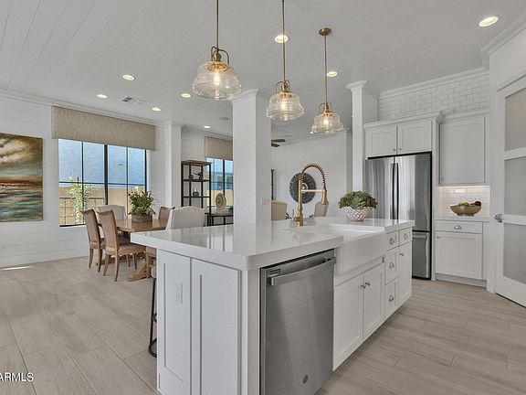 Super popular brick accented Bungalow elevation in new gated community. Now under construction, estimated Fall completion. Great infill location with desirable schools, EZ freeway access during the weekdays and a great gateway location for the weekends to head to the Salt River watershed lakes, mountains or a local hike! Nice finishes: 8' IRON front door, KitchenAid built in's, white Shaker style cabinets with tall uppers w/ LED lights underneath Thick quartz kitchen tops, Subway tile backsplash. Wood look tile throughout, NO CARPET! 3 car tandem garage features a side door and dedicated 220v and 110v outlets for tools or EV charging. Stereo and Security prewire. 8' interior doors with matte black hardware and fixtures. Builder finance incentives. Taxes est. Most pics are a model home