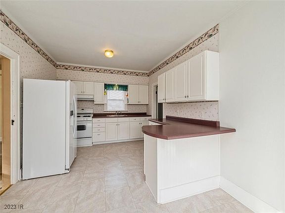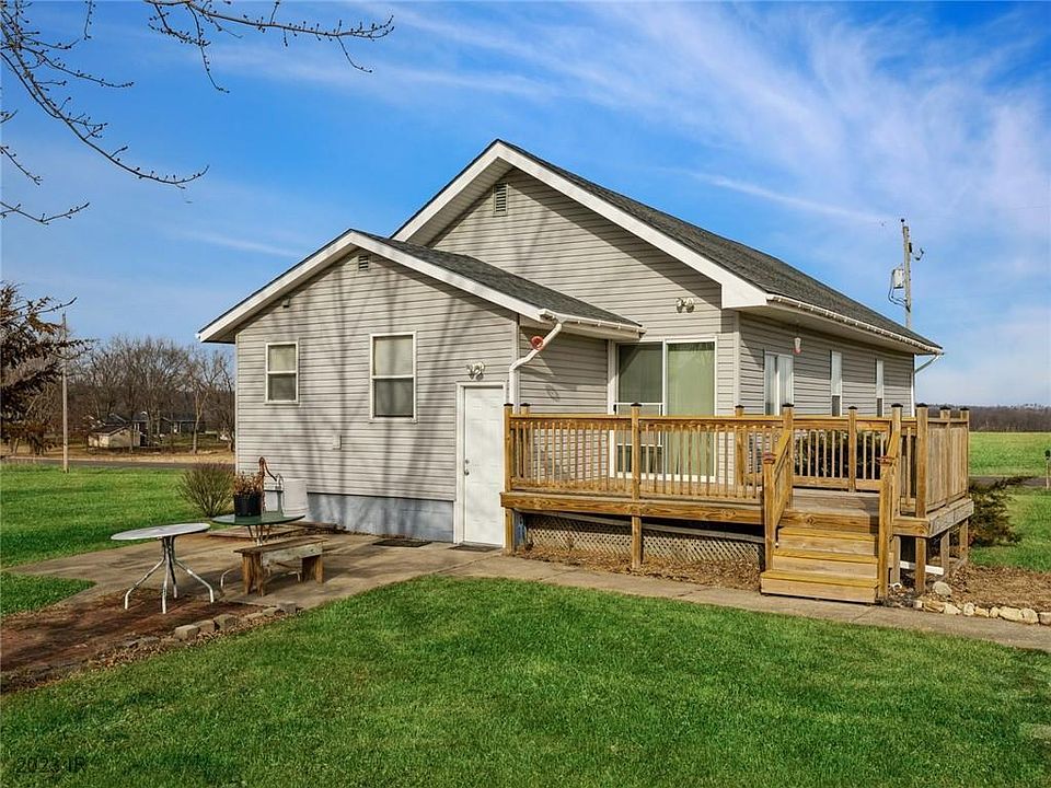 Located on a paved county road this move in ready ranch style home with 2.25 acres of flat land and two extra storage garages. 2 bedroom 2 bath with eat-in country kitchen. Updates include replacement roof, siding and windows in the last 15 years. Open white kitchen with all appliances. Natural Gas, Rural water, unfinished basement.