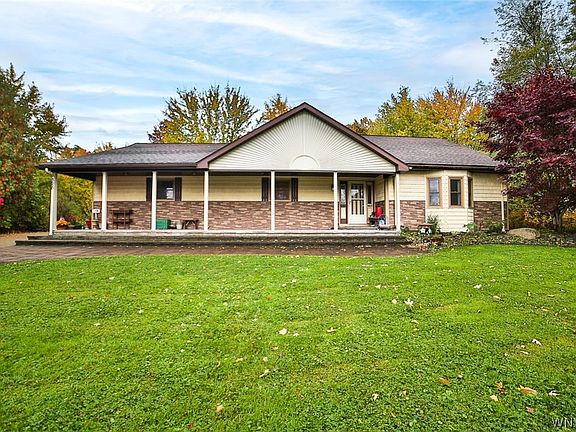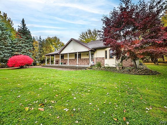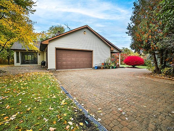 Your own private paradise in Niagara wine country! This house has so much to offer. The well-appointed eat-in kitchen features custom stained glass and built ins. There are two beautifully updated tile baths with luxury showers, one with tub. The sunroom/morning room addition adds 308 more sq ft to the 1600 original and it includes new windows and opening sky lights. There's an owner's suite with bath and California closets plus two additional bedrooms with generous closets. There is so much storage you'll find a place for everything. In the cozy living room there is a vaulted wood ceiling and a stone fireplace. The driveway and patio are constructed of pavers and the patio is perfect for entertaining. There are dozens of trees throughout the property inviting birds and nature to your private oasis. Located in the sought-after Starpoint school district this just may be the home you've been waiting for. Home warranty included. Possible owner hold on mortgage