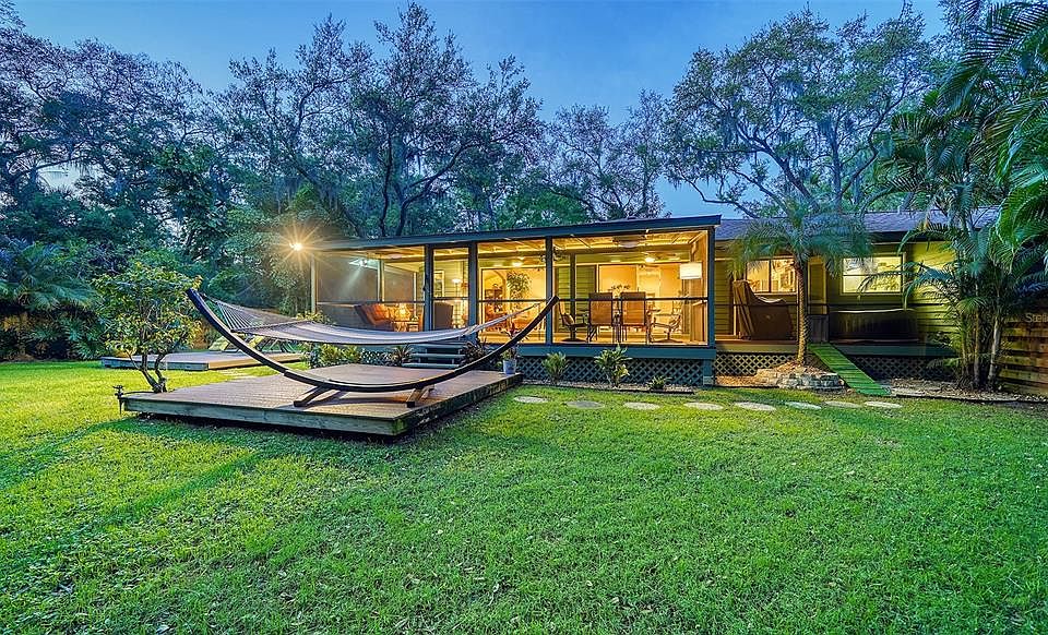 One look and you will fall in love! This fabulous 3-bedroom, 2-bath, 2-car garage with EV charging home is being sold turnkey furnished. Enjoy an open floor plan that flows into a large, spacious, and inviting screened lanai that looks onto an oversized backyard with tropical landscaping. This home has been meticulously maintained and beautifully remodeled using genuine Florida Pecky Cypress wood beams on the living room ceilings and 5-tubular skylights throughout the home that make it light and bright. The kitchen has been updated with granite counter tops and full height backsplash. A new mini-split AC has been added to the master bedroom. Large walk-in closets and a spacious laundry room. All new exterior paint. A/C 2021 and the roof is 12 years old. The large lot has mature landscaping on a private and quiet cul-de-sac is simply paradise. Minutes from the UTC, The Meadows Golf & Country Club, I-75, and Sarasota's beautiful beaches!
