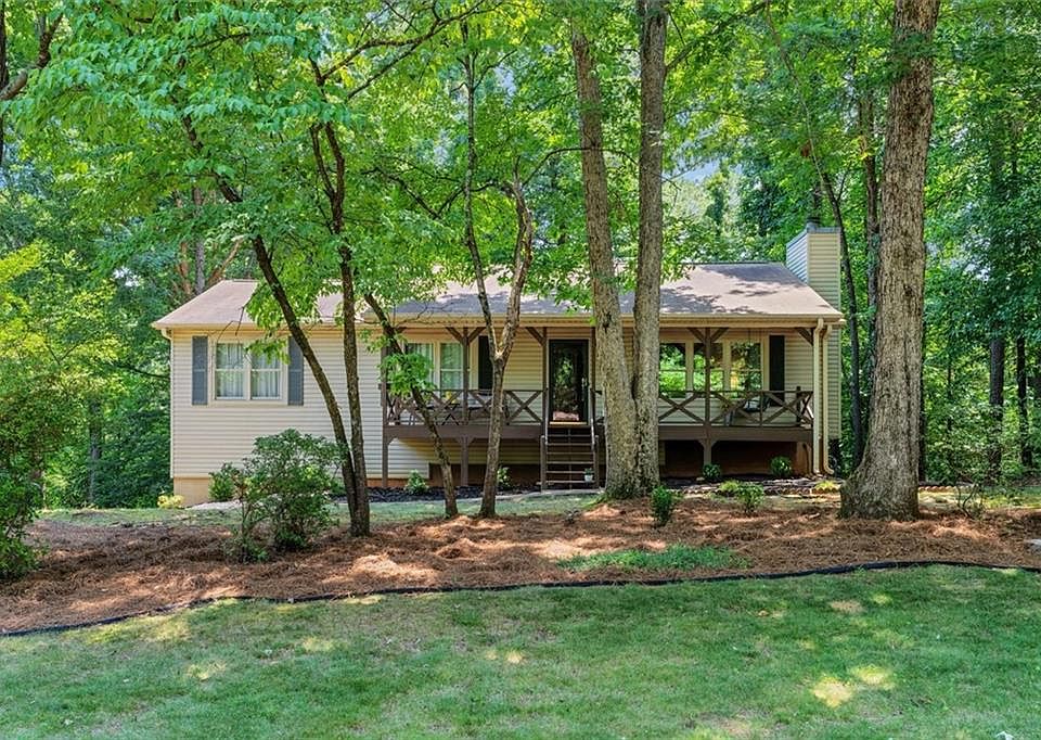CHARMING TRADITIONAL RANCH HOME, IN THE HEART OF KENNESAW, WITH AN INVITING FRONT PORCH! You’ll love the modern farmhouse vibe, especially the white washed stone fireplace with a stained wooden mantel in the family room, RUSTIC WOODEN PLANK FEATURE WALL in the primary bedroom, and open shelving feature in the kitchen. Winning updates include REFINISHED HARDWOOD FLOORS, newer carpeting in the bedrooms, newer LVP in the finished basement, and DOUBLE PANE WINDOWS! The bathrooms have been tastefully updated including a quartz vanity counter, glass enclosed shower, SAVVY HARDWARE & A SPUTNIK LIGHT FIXTURE and in the owner’s suite bathroom. You’ll really enjoy the extra spaces to hang out with a finished, daylight basement with LVP flooring and a cozy sunroom that opens to a brand new deck! Kennesaw community park is enjoyed by all at the front of the neighborhood. Only a stone’s throw of ABOUT 1 MILE TO EVERYTHING DOWNTOWN KENNESAW HAS TO OFFER including parks, specialty shopping, yummy restaurants, a brewery, a distillery, museum, KSU and new Piedmont Bank Amphitheater. Such a perfect location!
