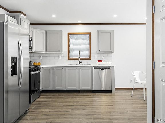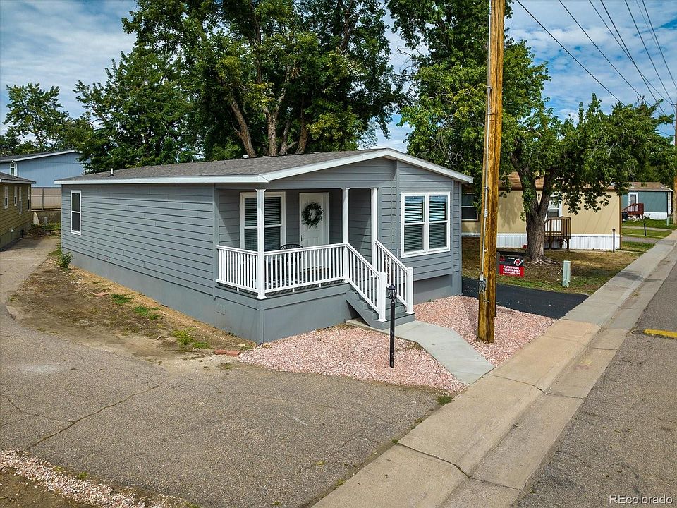 appliances in kitchen including refrigerator, stove and dishwasher. Separate area for dining room table and wide open family room area. In home separate laundry room. Ready to make your own! Love your cozy front porch! Enjoy your community amenities, including swimming pool, a new updated clubhouse coming soon, and sauna coming soon, card games, and internet café. Location, Location, Location!! This community is situated perfectly with quick access to the front range for hiking or stay local with shopping, dining and healthcare within easy reach.