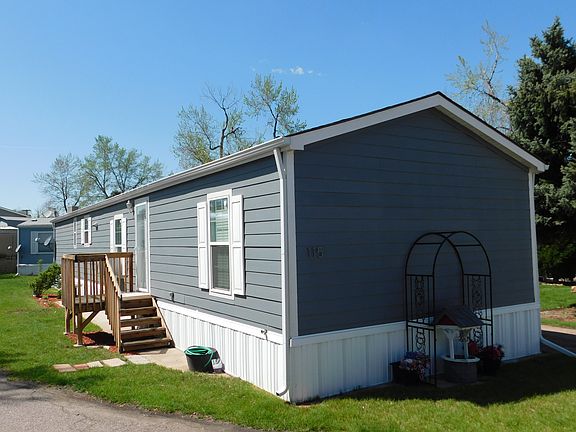 A rare opportunity to own a 2 year old custom designed, single wide manufactured home in an age restrictive community with a GREAT club house, wonderful pool. South Park Mobile Home & RV Community, 3650 South Federal Blvd, Sheridan, CO, Lot 115. Close to highway 285 and only minutes from the mountains to downtown Denver. A 2015 CLAYTON CUSTOM DESIGNED 18’ by 68’, charcoal grey with white trim and shutters. Home opens up to a large living space and open kitchen with breakfast counter for 3. Also plenty of space for a 4-6 person dining table. Vaulted ceilings, sheetrock walls and ceilings with knockdown texture. Crown molding throughout. 3 ceiling fans throughout and a chandelier in the kitchen. Enlarged windows with 2” blinds throughout. Also added 2 extra windows in the design for extra light. Two Master bedrooms: #1 is 16’x14’ with attached bathroom, a walk-in shower and a linen closet, #2 Master bedroom is 17’x13’ with a walk-in closet. Deluxe appliance package, 22 cf side by side refrigerator w/crushed ice and water, electric stove top range, microwave and dish washer. Upgraded to a 40 gallon water heater, 2 in-window AC units. Newer Washer and Dryer included. Energy smart package: 2x6 external walls, ceiling R33, floor R22, side walls R19 and roof 30# load for Colorado. Low E thermal pane windows. 2 exterior receptacles, new 8x10 grey/white shed. Lot fee is only $680 per month, includes water, trash and sewer.