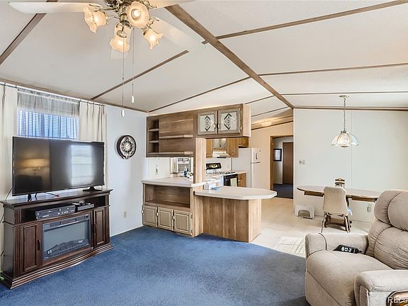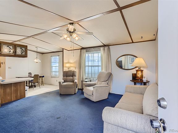Welcome home! This lovely 2 bed 2 baths home is ready to call your own. Love your bright open living area and kitchen with lots of cabinets for plenty of storage including beautiful stained glass. Plenty of and counter space with space for bar stools for eat in kitchen. With room for the dining room table. Huge living space. Escape into your spacious master bedroom retreat with its own bathroom and best part is the split floor plan with the other bedroom on opposite side of home with a hall bath. Side access into the laundry from carport. Enjoy your outdoor area with front patio and open grassy area to spend some time outside this summer with the 2nd carport. Enjoy your community amenities, including swimming pool, Billiards, Clubhouse and coming soon: a new updated clubhouse, dog park, sauna, card games and internet café. Additionally enjoy making connections with social gatherings, potlucks, holiday celebrations, social clubs and crafts. This community is located perfectly with quick access to the front range for hiking or stay local with shopping, dining and healthcare within easy reach.
