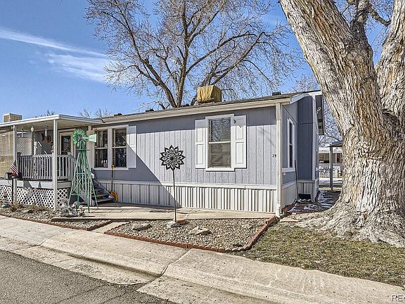 Welcome to this beautiful 3 bed 2 bath home in the desirable Ridgeline at River Run community! The light and bright open living area has brand new Berber carpet. The kitchen has tons of cabinets for extra storage and prepping area plus a lowered counter that can be used as a workspace or eat in space. The kitchen flooring is beautiful new vinyl flooring and all appliances are included. Love your very spacious primary bedroom with its own private bathroom. The primary bathroom has been remodeled! There's a gorgeous new vanity with quartz countertop and under mount sink. The walk-in shower surround and shower pan are non-porous, stain resistant, mold and mildew resistant Corian. The laundry room can also be used as a mudroom, it has an outdoor access. Enjoy our outdoor space with a covered front patio area, seasoned trees and a carport. Bonus, the Roof is New! Enjoy your community amenities, including swimming pool, Billiards plus, coming soon: a new updated clubhouse, dog park, sauna, card games and internet café. Additionally enjoy making connections with social gatherings, potlucks, holiday celebrations, social clubs and crafts. This community is located perfectly with quick access to the front range for hiking or stay local with shopping, dining and healthcare within easy reach.