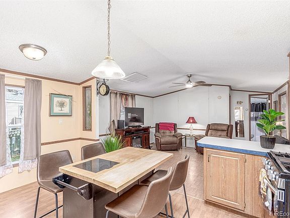Welcome to this bright and spacious 2-bedroom, 2-bathroom home nestled in the Ridgeline at River Run. Step inside to discover a light-filled living area with vaulted ceilings and plenty of room to relax or entertain. The open kitchen is thoughtfully designed with abundant cabinetry, the appliances are new and ideal for any home chef. Enjoy the ease of main level laundry tucked away just off the kitchen. Both bedrooms are generously sized, offering flexible space for guests, a home office, or your personal retreat. The home also features two bathrooms, including a roomy full bath with a walk-in shower. Love your outdoor living space where you'll find a spacious covered carport, two additional storage shed, and a ramp-accessible front porch for added convenience. Love your covered sunroom that provides extra space for storage as well. Plus this property comes with a New Roof! Enjoy your community amenities, including swimming pool, Billiards, Clubhouse and coming soon: a new updated clubhouse, dog park, sauna, card games and internet café. Additionally enjoy making connections with social gatherings, potlucks, holiday celebrations, social clubs and crafts. This community is located perfectly with quick access to the front range for hiking or stay local with shopping, dining and healthcare within easy reach.