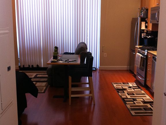 Offers due Tuesday, 6/4 at 5pm. Rental Rules: 6 month lease or longer is fine. Here is your golden opportunity to own a fully-renovated Crystal City / National Landing Studio with soaring 12' high ceilings to invest in the heart of AMAZON HQ2. Garage Parking space and Extra Storage bin included. Kitchen features beautiful contemporary cabinets, Bosch kitchen appliances w/ gas cooking & white Quartz countertops. Amazing attention to details with wide-plank engineered hardwoods, custom shadow box built-ins, Lutron dimmer switches, new recessed lighting, custom drapes to cover the floor-to-ceiling windows and Nest thermostat. Sliding door allows for private entrance via private terrace. Barn door access leads to a "California closet" walk-in changing room. The bathroom is tastefully completed with heated river rock tiled flooring and pebble rock tiled walls overlooking a contemporary floating vanity and Kohler bath fixtures / TOTO toilet. Another barn door hides the new washer and dryer. Flat screen mounted TV and motion-sensor Security system w/ indoor and outdoor camera convey. New hot water tank in 2016. Amenities: 24-hr security, Concierge, Pool, Fitness+Club Room, Courtyard & Roof Deck. Mins to Crystal City / Amazon HQ2, The Pentagon, DC & DCA Airport + METRO (w/ Metro bus right outside!). Low condo fees ($213 p/month)! Pet-friendly.