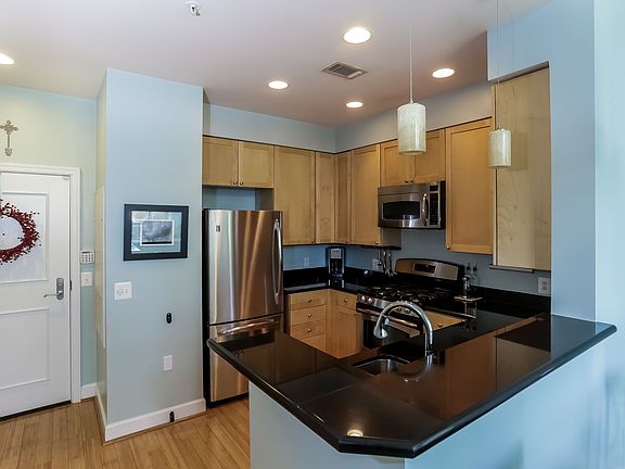 Rare private patio level location with every luxury amenity at your door. Stunning two bedroom condo features a gourmet kitchen, soaring ceilings, abundant closet space, two spacious baths, garage parking, and direct street level access that is ideal for pet lovers. Fitness Center with media room, billiards, etc. On site pool, grocery store, spa, dentist, cleaners, and minutes to Nat'l Airport!