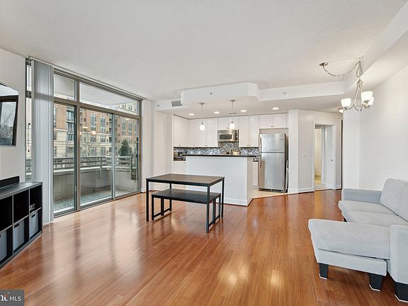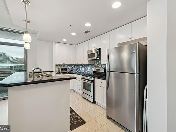 Rarely-available 2-bed, 2-bath corner unit with 9-ft+ ceilings, over 1100 sq ft and 2 garage parking spots located in the sought-after community, The Eclipse on Center Park. Step into this newly-painted (2023) condo boasting beautiful hardwood floors, recessed lighting and an abundance of natural light throughout. The Chef's kitchen is the centerpiece of the home, showcasing gorgeous refinished cabinets (2023), granite countertops, tiled backsplash, stainless steel appliances, and a large center island with pendant lights—an ideal setting for both your morning coffee and hosting gatherings. Entertain your friends and family in the adjacent living and dining areas with access to wraparound private balcony and cityscape views. When it's time to relax, head to the owner’s suite featuring a 2nd private balcony, large walk-in closet with custom organization system, and a luxurious en-suite bath with dual sink granite countertop vanity, tile floors, and shower/tub combo. A second spacious bedroom with a 3rd private balcony, custom closet, and an additional en-suite full bath offers the versatility to serve as a bedroom, in-home office, or rec space. In-unit full-size washer and dryer, 2 garage parking spots and extra storage unit (# A76) convey. Other recent upgrades include new carpet (2023), new washer/dryer (2023), and water heater (2019). Built in 2006, this pet-friendly building features countless amenities including onsite Harris Teeter, rooftop terrace with stunning views, pool, club room, fitness center, tot lot, 24/7 concierge and bike storage. This exceptionally-located condo is just minutes to Potomac Yard and its new metro stop (blue/yellow lines), National Landing, Amazon HQ2, Crystal City, Old Town Alexandria, Rosslyn, downtown DC, Reagan Airport (DCA) and the proposed $2B entertainment complex that will be the new home of the Washington Capitals and Wizards. Don't miss this!
