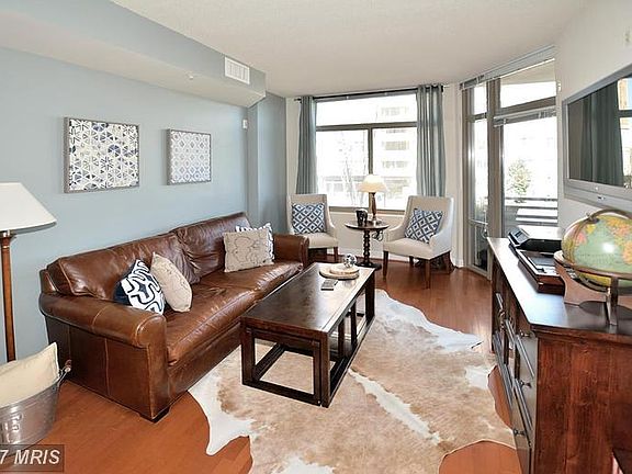 Luxury furnished rental. Full Service metro accessible building in the heart of Arlington/National Landing/Crystal City. Easy living in bright, spacious 1 BR w/custom walk-in closet and private balcony with table and chairs. Open floor plan and high ceilings with wood floors in living areas, gourmet kitchen w/gas range, stainless, granite, custom breakfast bar. New Queen size bed, luxury linens, fully stocked kitchen with every convenience. Oversized bathroom with wall of custom built-in storage. Full size front loading stacked washer/dryer in unit. Recently updated and nicely equipped Fitness Center on same floor as unit. Secure garage parking (P2) near building entrance available for additional fee ($75.00). Six or twelve month lease available at reduced rate. Building amenities include well equipped Fitness Center and full sized outdoor swimming pool. Concierge desk 24/7. Well appointed Community Room/Business Center and rooftop terrace (great view of July 4th fireworks) in same building with fabulous views of DC Monuments and Potomac River. Bike storage areas. Exercise trails in pet friendly park adjacent to building. Dining, retail and numerous services a short walk away in National Landing, Delray and Crystal City. Heart of National Landing Community. A few blocks to Potomac Yard/National Landing metro and a short walk to Crystal City Metro Station. VA Tech Innovation campus and Amazon HQ2 one block away. Short commute to Pentagon and DC. Short Term Furnished; Minimum 3 months; utilities Included (Heat/AC/Gas/Electric/Internet). Pets OK.