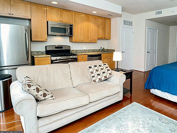 Turn back the clock and buy this efficiency unit with gas cooking, for the March 2020 price. We are sporting a beautiful new bathroom: Come see! You will love living at the Eclipse on Center Park, and the monthly fee is only $273. The gym and the pool are just a few steps down the hall, no stairs. The recently redecorated community room with a breathtaking view is on the 7th floor. Amazon and Virginia Tech are building campuses and the Eclipse is at the epicenter. Boeing and Raytheon have recently moved their headquarters here too. The Eclipse is the newest high-rise condo in the Crystal City area by about 3 decades. Construction is solid, with concrete columns and floors, not to be confused with nearby residences that are 6 stories or less, and are stick-built despite the look of their brick facades. Our concrete construction is a plus for fire safety and quiet enjoyment, and it is a treasure to have a Harris-Teeter supermarket in our basement. There is a 24/7 concierge to welcome our guests and receive our packages. Be sure to notice the bus stop right across 36th Street to Crystal City. This unit includes a garage parking space, extra storage, and a washer and dryer. The new Metro stop just to the south of us on Potomac Avenue will open soon. A little-known advantage: One can walk home from Reagan National Airport in about 5 minutes. Just take the airport bus to Economy Parking lot Stop #12. hop over the Jersey-wall, and down the trail.