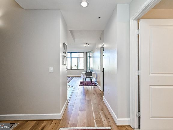 1 BR • 1 BA • 1 Den • 1 Balcony • 1 Garage Parking Space. The Eclipse on Center Park, a luxury high-rise waterfront condominium in Crystal City - National Landing - Potomac Yard. Moments away from Metro, D.C., Del Ray, Old Town Alexandria, Reagan National Airport (DCA), Pentagon, Amazon’s HQ2, MGM National Harbor, and more. Conveniently located to local shopping, dining, grocers, metro, and walking & biking on Four Mile Run Trail. Ascend the elevator from the beautiful modern lobby to unit 345. Upgrades include newer white oak hardwood flooring, recently painted in a neutral color palette, new light fixtures, and 9-foot ceilings throughout the main living areas. The updated gourmet kitchen boasts maple hardwood cabinetry, undermount lighting, granite countertops, tile backsplash, stainless steel appliances, and a breakfast bar with pendant lighting. Natural light radiates into the dining and living rooms from the oversized windows with transoms and glass door to cozy private balcony. Floor-to-ceiling windows, newer carpeting, ceiling fan, and walk-in closet with custom built-in organizers are highlights in the primary bedroom. Totally remodeled, the full bath is completed with an oversized hickory vanity, white quartz countertops, and oversized gray tile in shower/ tub combo and has both hallway and bedroom access. A separate den is the perfect space for an office to work from home. Washer and Dryer are in-unit. Newer HVAC & Hot Water Heater (2018). Almost $44,000 in updates/improvements. A storage unit and reserved garage parking spot are included. Building amenities include 24/7 concierge, community club room, community pool, exercise room, media room, rooftop terrace with commanding city & river views, and on-site Harris Teeter.