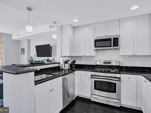 Discover the perfect blend of style and comfort in this updated 1-bedroom, 1-bath condo at The Eclipse. Bathed in natural light from floor-to-ceiling windows, this sophisticated residence features rich chocolate brown hardwood floors and an airy open-concept design. The impeccably appointed kitchen boasts stainless steel appliances, white cabinetry, ample storage, and recessed lighting. It seamlessly flows into the spacious living area, creating an inviting and relaxing space. Step onto your private balcony to enjoy city views. The generously sized bedroom offers a custom walk-in closet, while the updated bathroom showcases a sleek walk-in shower, white cabinetry, and stylish black accents. Additional conveniences include an in-unit washer and dryer, a dedicated garage parking space, and a storage unit. The Eclipse provides an array of premium amenities, including a 24-hour concierge, fitness center, swimming pool, party room, and a breathtaking rooftop terrace with panoramic views of the Potomac River and Washington, D.C. Plus, enjoy the ultimate convenience of having a Harris Teeter grocery store just moments away. Ideally situated for effortless commuting, this prime location is just minutes from the new Potomac Yard Metro, Crystal City, and Pentagon City Metro stations and Metrobus stops. Reagan National Airport, Amazon HQ2, and the vibrant dining and shopping of Crystal City, Pentagon City, Del Ray, and Old Town Alexandria are all within easy reach. Outdoor enthusiasts will love the nearby scenic trails and green spaces. This thoughtfully designed floor plan includes a versatile nook—perfect for a home office, meditation space, or cozy workout area. Modern, stylish, and exceptionally well-connected—experience the best of urban living at The Eclipse.