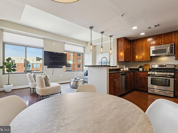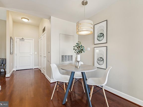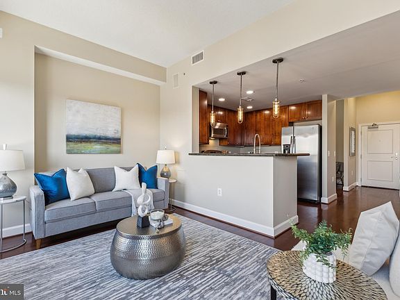 Seller has accepted an offer. OPEN HOUSES ARE CANCELED Fantastic opportunity to make this beautiful one bedroom, one bath unit with den your new home. Located in the highly sought after “The Eclipse on Center Park” community in the thriving National Landing area, this 843 square foot top-floor unit is one of the largest one bedroom models in the community and has so much to offer. It boasts a light and bright main living area with two large windows and beautiful hardwood floors throughout. The living room is hardwired for a sound system and conveys with a television and Bose soundbar. The kitchen shines with beautiful wood cabinets, stainless steel appliances, hardwood flooring, and recessed lighting as well as stylish pendant lights over the breakfast bar. Adjacent to the kitchen, you will find a cozy dining area. The primary bedroom is a relaxing respite with carpet flooring and a nice size mirrored closet with custom shelving system. The bedroom also features a walkout balcony that overlooks the pool. The den provides an opportunity for a home office, home gym, or bonus room. This property also has a large walk-in hall closet, an in-unit washer/dryer (new 2024), assigned garage parking space, and private storage unit. Water heater (2021) and HVAC system (2022) have been recently updated. Residents of the Eclipse enjoy many amenities, including a 24-hour concierge, fitness center, outdoor pool, and community room. The building also has a Harris Teeter and Paisano's restaurant on the ground level. Looking for outdoor entertaining space? The Eclipse has a fantastic rooftop terrace that offers views of the Potomac River, Washington DC skyline, and memorials on the National Mall (great for 4th of July fireworks!), as well as a great view of the Alexandria Masonic Temple (see photos). Outdoor enthusiasts will also appreciate the Eclipse's prime location, which provides easy access to Four Mile Run Park and Trail, Potomac Yard Park, and the Mount Vernon Trail. Conveniently close to the Crystal City Metro and VRE station and the new Potomac Yard Metro, which is within walking distance, the Eclipse offers easy transit options as well as close proximity to Amazon's HQ2 and the new Virginia Tech Innovation Campus. Just a quick drive to Washington, DC and Alexandria, the Eclipse will make your commute to downtown or Old Town easy. Situated near Crystal City, Potomac Yard, and Pentagon City, living at the Eclipse offers a wide range of dining, shopping and entertainment options for all.
