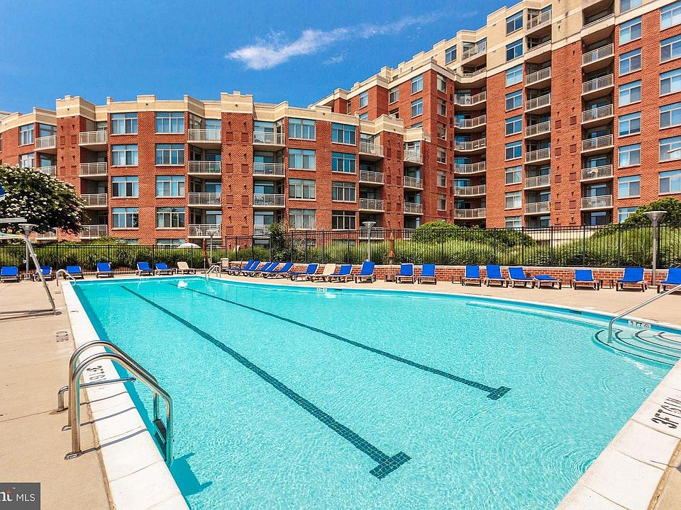 Rare top floor unit with extra-high 10 ft ceilings (most units are not 10 ft high) and panoramic views of the river, rooftop pool, & green landscaping. Brighten every day with natural light that spills in from southern exposure. Conveniently take the elevator directly to the 24/7 Harris Teeter downstairs. Enjoy upgraded solid hardwood floors throughout & an open floor plan- The gourmet kitchen with stainless steel appliances & granite counters opens to a light-infused dining room & living room with extra-high 10' ceilings in the great room, tall windows, & fireplace that leads to a balcony overlooking the rooftop pool, green landscaping. Unbeatable location in the heart of National Landing/Crystal City next to Amazon HQ2 near Metro, 395, Pentagon, DC, Old Town Alexandria, Reagan airport. The condo also features ceramic tiles & granite counters in the master bath, recessed lights, washer/dryer in unit, 1 garage space, extra storage, much more. Amenities include: Rooftop pool, gym, party room/meeting room/billard, outdoor rooftop terrace, concierge, front desk, intercom, etc.