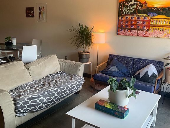 Beautiful new building, no deposit, application fees reimbursed upon approval, and a $400 cash move-in bonus when you sign the lease. Two large bedrooms and one very large primary bedroom with a walk-in closet. Each bedroom has its own controlled AC/heat unit. Washer and dryer, dishwasher, and microwave in the unit. Garage door in the living room that rolls up for indoor/outdoor living space with the huge ground floor patio. Floors are polished concrete and pets are allowed with small pet rent ($25/mo, no pet deposit). Kitchen island comes with the apartment. Apartment building is at a dead-end behind Hopworks brewery and is quiet. Great location to get to anything. Walking distance to shops, restaurants, and bars on Clinton and Division as well as the Target on Powell. Also an easy walk to both Powell and Kenilworth Park. Building highlights include a bike and/or dog washing station, bike storage room, pet play area, 4 rooftop lounges, and seating areas with fire pits. You have the option to pay $150/month for a parking spot in a lot but we park on a side street for free and have had no issues. Utilities for everything usually run about $150/month for the whole place ($50/person). Remainder of current tenants lease to be signed over (lease ends mid-August and can be renewed), $22 application fee reimbursed on approval, and no deposit due, it has already been paid by the current tenants.