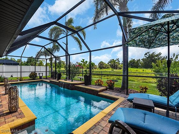 Hurricane Ian fortress - Welcome to this stunning pool home located in SE Cape Coral, Florida. This magnificent home offers a perfect blend of comfort, privacy, and luxury living. A 2021 roof, 2022 bath remodel, 2022 epoxy garage floor, 2022 garage cabinets, and 2023 privacy fence offers an effortless transition to homeownership. Pavers wrap around the property with seamless flow from the drive way to the side yard, continuing on in the pool lanai.