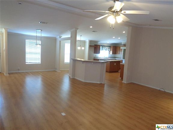 Large corner lot close to Belton Lake. Almost a half acre with RV Parking, 2 extra carports, large decks on front and back, above ground pool with 2 storage buildings. All decks and wood privacy fences have been recently been stained. Interior has a very open floor plan with formal living, crown molding, and fireplace. Kitchen features breakfast bar, island, plenty of counter space and cabinets. Master bath has large walk in closet, double vanity sinks, separate tub and shower. Home shows well.