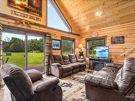 Picturesque log cabin on private 40 acres close to town! Rare opportunity for a unique mix of pasture, fruit trees and forest with paths throughout the property. Full log cabin features upscale fixtures and finishes - public lake access nearby - wood fireplace - mix of woods and open field - fenced area (what did you call that space?) - washer, dryer, dishwasher, fridge included - basement ready to be finished Furniture negotiable or included?