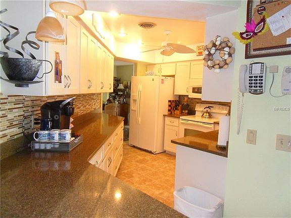 Upgrades galore! You ask for it and they've done it. Wonderfully maintained, this 3B 2B boasts the perfect "cooks" kitchen; quartz counters, solid wood cabinets, new appliances, breakfast bar and pool view. Family room and dinette area have laminate floors, and tile everywhere else but the bedrooms. Master Bedroom has hidden a/c unit that is wired to a separate generator panel for emergency back up cooling. The guest bedroom, in this split floor plan home, has double closets next to a huge guest bath which opens to the pool. Next, imagine yourself dining on the newly screened lanai, floating in the updated pool or soaking in the heated spa with its soothing waterfall. The 2 car garage with workbench, electric panel wired to run gas generator, plus a separate work shed, also has paved parking area for those extra florida toys. Picturesque yard with mature oak and citrus trees,landscape curbing and pet friendly fencing. Now the big items; roof 2005,A/C 2006, Replumbed 2009,Extra R-19 Insulation ,Impact Thermal Pane Windows 2015, Water Softener System 2016. Don't miss what the neighborhood has to offer; Shamrock Park, Boat Ramp, Beach Ferry, Yacht Club, Scat Bus Service and NO mandatory HOA fees. Ask to See the complete UPGRADE list. Don't MISS The AMAZING home!