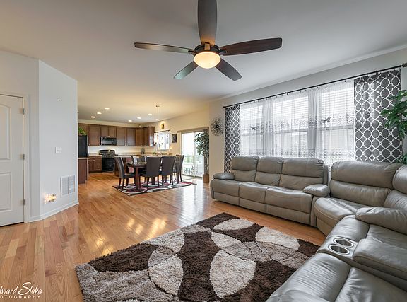 Rare find! An Algonquin home only 3 years young! Barely broken in! Impressive Jericho plan greets you with a two story upgraded, iron rail staircase overlooking formal living & dining rooms. Large family room is opens to the gorgeous center island kitchen with upgraded dark maple 42" crown molding cabinets plus granite countertops & black appliances. Durable real hardwood flooring entire main level! 3 car garage leads to large main level mudroom. Looking for large bedrooms and each has to have a walk-in closet? Right here! Want 2nd floor laundry where all your clothes are? We have it! King sized master suite has trey ceiling and his/her walk-in closets leading to large private master bath with his/her separate vanities, soaking tub plus separate double shower! Large corner lot has black iron fence! Come make this large home with Huntley schools yours for the Holidays!