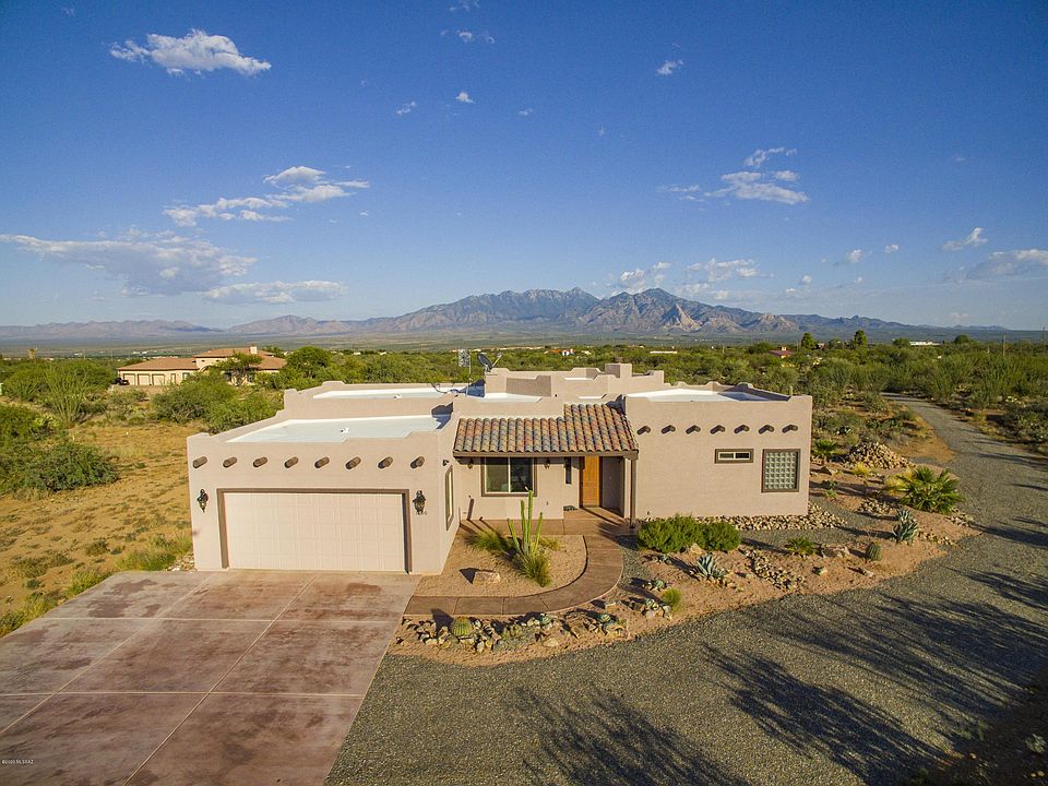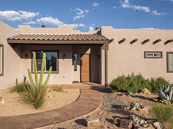 Your search has ended! Stunning open floor plan with full on mountain views from each main room! The floor to ceiling rock fireplace captures your attention in the living room. Designer lighting throughout makes this even more appealing. Open & bright kitchen with self closing hickory cabinets, quartz countertops and stainless plus a walk in pantry. Porcelain tile floors throughout except bedrooms. High ceilings with light and breathtaking views make this a serene and highly desirable get away. Quiet and Privacy abound with plenty of land for whatever you desire to make this 2 year old home your dream home! On the paved stretch of Calle Tres! And no HOA. Be sure to view the Virtual Tour!