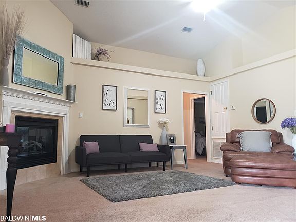 Beautiful well kept 3 bed 2 bath brick home. Conveniently located minutes from Gulf Shores beaches, Beach Express, Publix and Target. Dining area plus formal dining area. Formal dining can be used as an office space or study. Large open living area with vaulted ceilings and fireplace. Freshly painted white cabinets in the spacious kitchen with a very functional layout. 18 inch tile in kitchen, dining, foyer, bathrooms and laundry room. Spacious Master Suite includes walk-in closet and adjoining bath complete with a Garden tub, separate shower and double vanity. French back doors take you to the covered patio and fenced in back yard. Double car garage and a peaceful no through traffic subdivision.