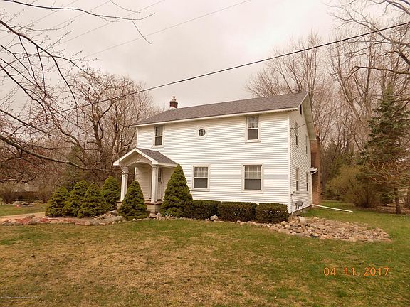 Great location near MSU and freeway. Farm house style with over 2100 sq ft, 2.5 baths. Two large garages. 1.26 acres.