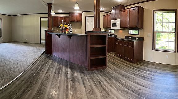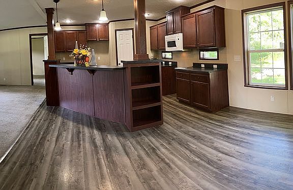 Spacious, move-in ready 3 Bedroom, 2 Full Bathroom home on large lot in Austin Manor Community. Peaceful wooded setting. This home features a huge great room with open kitchen, dining, and living rooms. Loads of cabinets and counter space. Walk in pantry closet! Lots of windows. Cream colored vinyl siding with green shutters, asphalt shingled roof. Huge primary suite with giant ensuite bathroom. Large closets throughout. Dedicated laundry room with its own closet. Inquire about our $2,500 appliance allowance! Additional 10' x 12' deck is also an option. Own your home with as little as $3,950 (5%) down payment, subject to credit approval. Financing options available, call or visit us today.