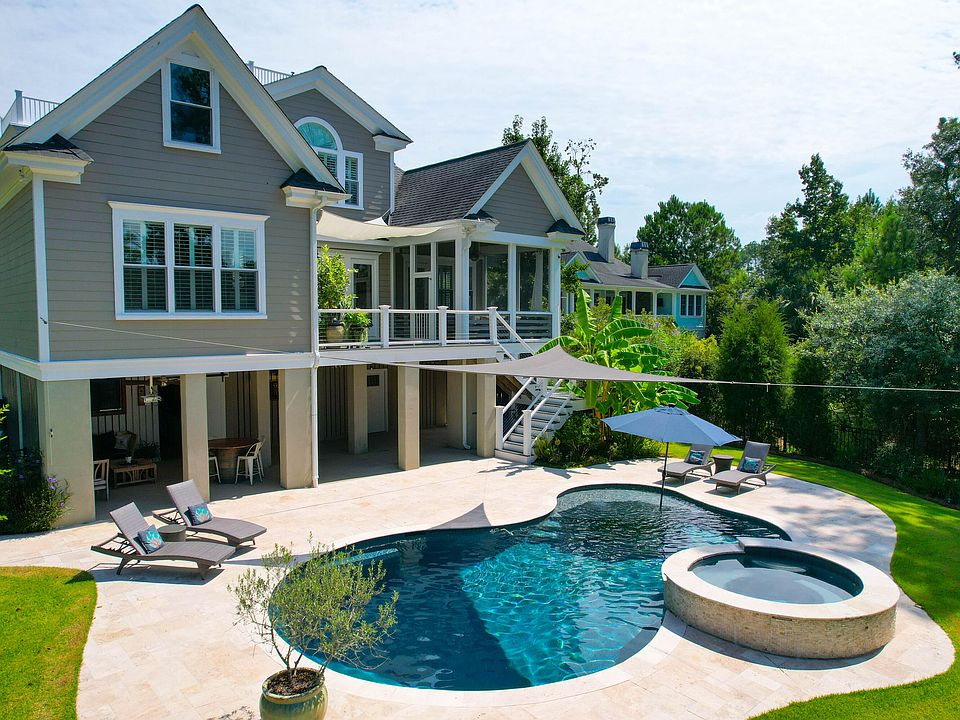 **Stunning Custom Home in Private Darrell Creek Cul-de-Sac** This exceptional home is an entertainer's dream, nestled in a private cul-de-sac within the sought-after Darrell Creek neighborhood. Designed for hosting, this property features a luxurious pool and spa, an outdoor kitchen, multiple porches and patio areas perfect for gathering with friends and family.As you step inside, you are greeted by an open foyer with a dedicated office/study to the right and a formal dining room to the left, which seamlessly connects to the kitchen via a Butler's pantry and bar area. The great room is the heart of the home, boasting a gas fireplace, built-in cabinets, and exquisite moldings, to include a coffered ceiling.The living room effortlessly flows into the chef's kitchen, equipped with a gas range featuring four burners and a grill, double ovens, Fisher & Paykel drawer dishwashers, and updated quartz countertops with a stylish backsplash. Off the kitchen, you'll find access to a screened porch overlooking a serene pool area. Adjacent to the family room, the sunroom offers another inviting space for gatherings and opens up to both the rear porch and the screened porch. The spacious primary suite is conveniently located on the main floor, offering a sitting area, a luxurious bathroom with a walk-in shower, soaking tub, double vanity, and large walk-in closets complete with custom built-ins. The suite also provides direct access to the laundry room. The home is equipped with hide a hose central vacuum system. Upstairs, a cozy loft with access to the front porch leads to three additional bedrooms, two sharing a jack-and-jill bath, and one with an en-suite bath. Off the large third bedroom, there's an additional closet (used for AV equipment) and a walk-in attic providing ample storage space. The backyard is a private oasis, featuring mature landscaping and backing onto tranquil wetlands. Relax by the resort-style pool, catch the game on the outdoor TV, and fire up the grill and smoker in the well-appointed outdoor kitchen. All of this is just minutes away from top-rated schools, shopping, beaches, and downtown Charleston.