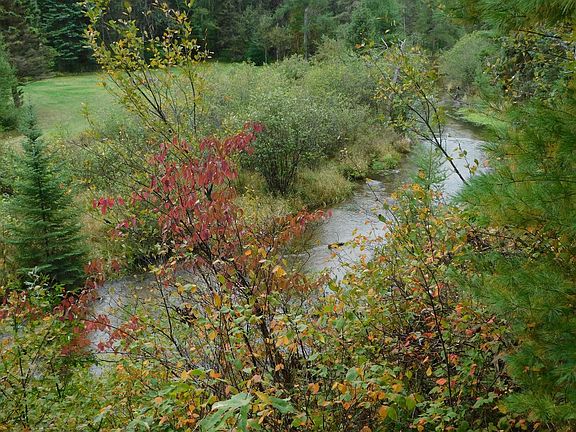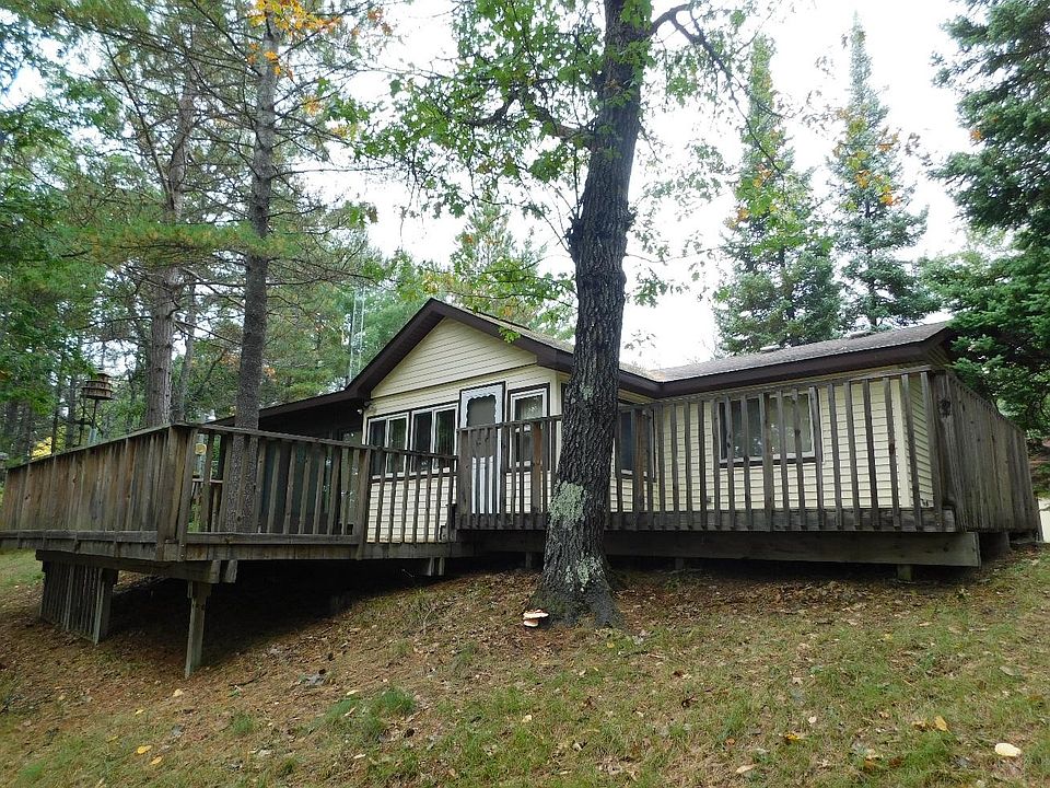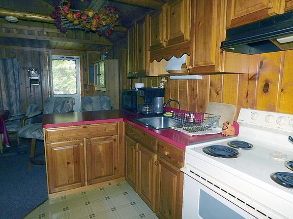 BIG CREEK FRONTAGE- 2 bedroom, 1 bath home with 150 feet of frontage on the Big Creek. Large front deck, and sun room overlooking the creek. Knotty pine interior thru out, french doors open into a large living room with a gorgeous stone gas fireplace and vaulted ceilings, cathedral ceilings with pole rafters in the kitchen and dining room giving it an open feel. Vinyl siding, sidewalks, 2 sheds attached heated garage and 28 X 40 detached garage. Completely furnished. D-401 $ 110,000