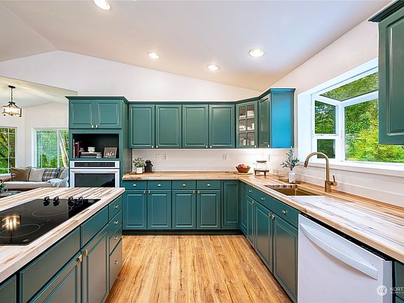 Looking for Acreage & Upgrades?First time on the Market,this Custom & Contemporary,Sprawling,1 Level Gem is Everything You’ve been Searching For!COMPLETE REMODEL with beautifully appointed updates & thoughtful finishes.Vaulted Ceilings & skylights throughout live large,especially in the open concept kitchen nestled in the heart of the home with a living room,wood burning stove,room for more & picturesque windows bringing in the serene acreage around.Primary bd features a 5 piece spa-like bath,large walk-in closet,skylights to flood in natural light & access to the covered deck offering a tranquil retreat.Privacy abounds w/ a 3 bay shop,x-tra finished space & an art/office studio to be inspired.Unparalleled convenience,minutes to I-5 & Town!
