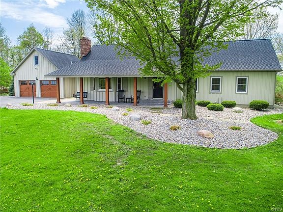 Peace and tranquility abound in this custom crafted 4 bedroom, 3.5 bath Cape Cod style home. The open floor plan features cherry wood floors, a wood burning fireplace and a gourmet kitchen with top of the line appliances and finishes including soapstone countertops. Both the dining area and kitchen have doors leading to the beautiful stone patio making entertaining easy. The first floor layout includes a master suite, full guest bath and additional bedroom or office while the second floor has an additional full bathroom and 2 large bedrooms. Additional living space in the finished lower level with half bath. This 7.5+ acre property with barn is a nature lover's paradise with many unique trees and plants and also permits horses. No detail has been overlooked, this property is a must see!