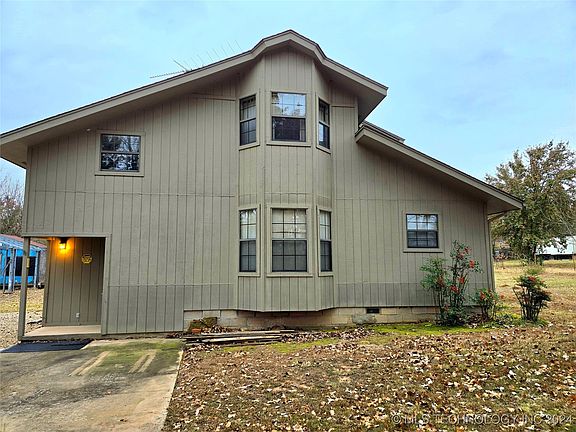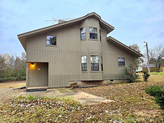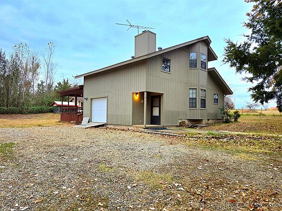 Spacious 2-Story Home on 1.3 Acres. Perfect for Country Living & Outdoor Enthusiasts! Welcome to your Homestead on a spot of land. Great for starting a hobby farm w/lots of room to roam. Situated on 1.3 ac, this 2-story home offers the perfect balance of comfort, versatility, & space. Whether you're looking for multi-generational living, hobby space, or a peaceful retreat, this property has it all. Enjoy the convenience of two en-suite bedrooms, one downstairs and one up, perfect for privacy or hosting guests. Flexible living spaces, an office/hobby area provides the perfect space for remote work, crafting, pursuing your passions or play area for kids. With the open-concept design, the floor plan seamlessly connects living, dining & kitchen areas, creating an inviting & airy space for entertaining or everyday living. Seller started renovations, some items will need your special touch. Rounded doorways add character to this home. Built in TV, wires are streamlined behind the wall. The living room has a WB fireplace w/new glass door screen for the OK winters. New floors downstairs & some upstairs. Kitchen has pull out drawers for convenience. X-large eating area off the kitchen for plenty of room to host holidays. Off the dining area is a sliding glass door that leads to the lg wooden deck that wraps around the side of the house with a ramp if needed. At the end of the ramp is built-in storage compartments as well as an attached doored storage shed for small garden tools. Want chickens? No problem! There is a coop waiting for them along with nest boxes. 2 add'l storage buildings equipped with lofts, provide ample room for tools, equipment, or extra storage. 2 add'l storage areas as well. Partially fenced, you can finish it off and cross for livestock, or with 1.3 acres of land, there's plenty of room to garden, play, or relax under the stars. This home offers endless possibilities for living and lifestyle. To be sold AS IS with no repairs by Seller.