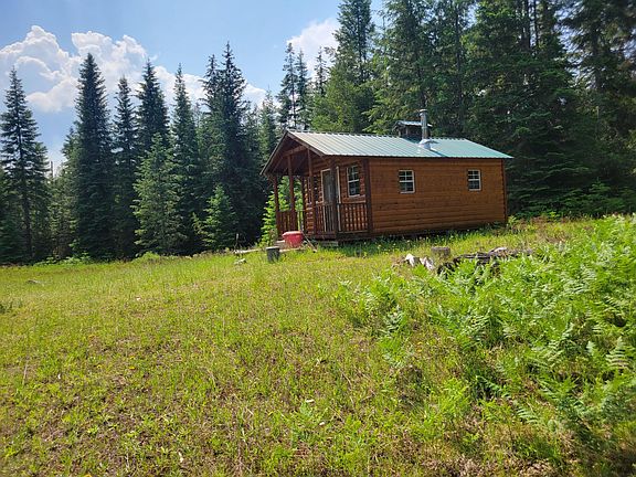 Discover 40 acres of serene beauty. This picturesque land features a small creek, a lovely pond, and flat usable terrain. Majestic fir, larch, and cedar trees grace the property. With 13 acres of sub-irrigated hay field or pasture, it's perfect for farming and hunting. A cozy dry cabin with a wood stove adds charm. Enjoy mountain views with wild life and easy access to two fishing lakes. An idyllic homestead opportunity awaits amidst nature's splendor.