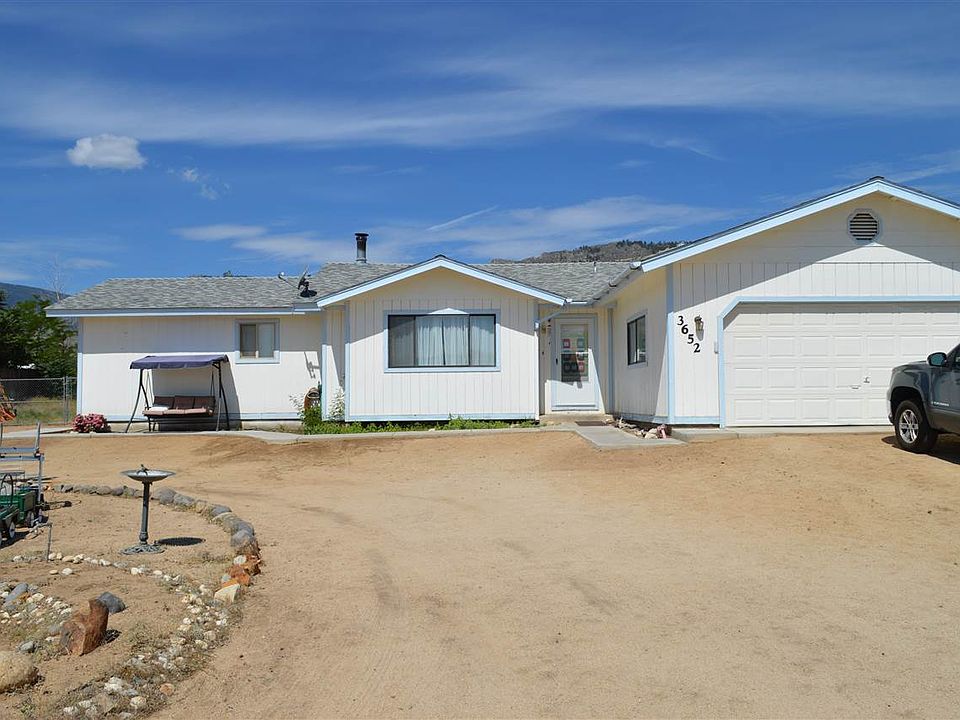 This home sits on a full acre and has two master bedrooms! This property has trees and partial landscaping in front while the backyard is ready for your lawn, trees, and planters. A wood fireplace heats the home while overlooking great views of the Sierra's.
