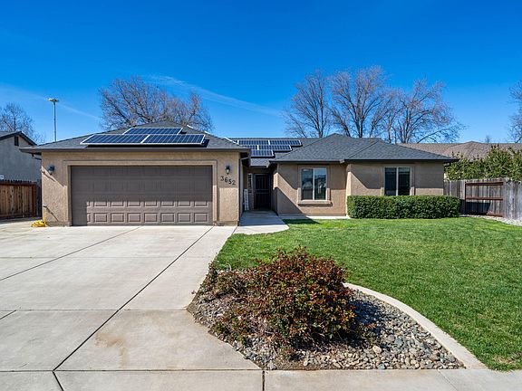 Welcome Home! This 3 bedroom 2 bath open floor plan has a lot to offer. Granite countertops, long covered patio across the back, above ground pool all gated at the back of the backyard, owned solar, stucco exterior, 2 car attached garage. Small RV parking..