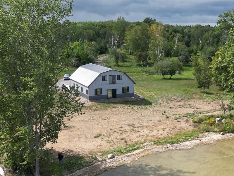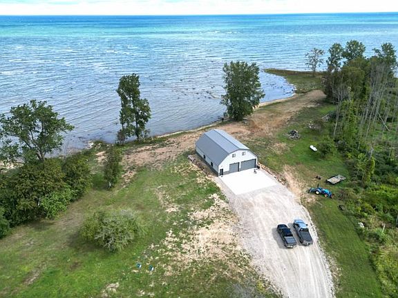 If the calming sound of the waves is important to you, this newly constructed 1-1/2 story gambrel style custom home on 4.55 acres is just what you're looking for! Featuring a rare 369.77 feet of walkout level Lake Huron frontage that provides a spectacular panoramic view of the lake and plenty of room for watersports! The home was built by one of the areas premier builders using 2 x 6" conventional framing and approximately 5" of spray foam insulation throughout. Heating of the main level and attached garage is efficiently accomplished by in-floor radiant heat with a separate forced air furnace heating the upper level. Summer interior comfort is equally accomplished with a new central air conditioning system. The 2,112 sq. ft. of the open and airy interior begins on the main level with the beautiful 13 x 14 kitchen boasting plenty of granite countertop and cabinetry, a 10x18 dining area with a walkout door wall to the beach, a full bath and 15x18 living room for comfortable entertaining. Laundry is conveniently tackled in the 6x10 main level laundry room. The main level living area is further enhanced with 11.5 ft. high ceilings with LED recessed lighting and ceramic flooring. Whether it's for family or VRBO rental accommodations, there is no shortage of upper-level sleeping space in the 3 generous bedrooms (12x20, 10x18, 10x25), a full bathroom, an 8 x 18 landing, high ceilings and Pergo vinyl flooring throughout. The 24x40 insulated and finished 3 car garage, also with 11.5 ft. ceilings and 2 ten foot high doors adds an additional 966 sqft to the footprint of this house. The moderately wooded property is very quiet and private with no immediate neighboring homes, just nature and shoreline! If you just want to relax and take in the views, the small pond and many fruit trees attract and provide plenty of wildlife viewing. The home is reliably serviced by municipal water and underground power providing 200 amp electric service. Most of the furnishings in the home are available. This unique opportunity is priced to sell and strongly supported by a recent (September 18, 2023) appraised value of $620,000. Shown by appointment, call to schedule your personal showing, short notice ok!