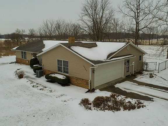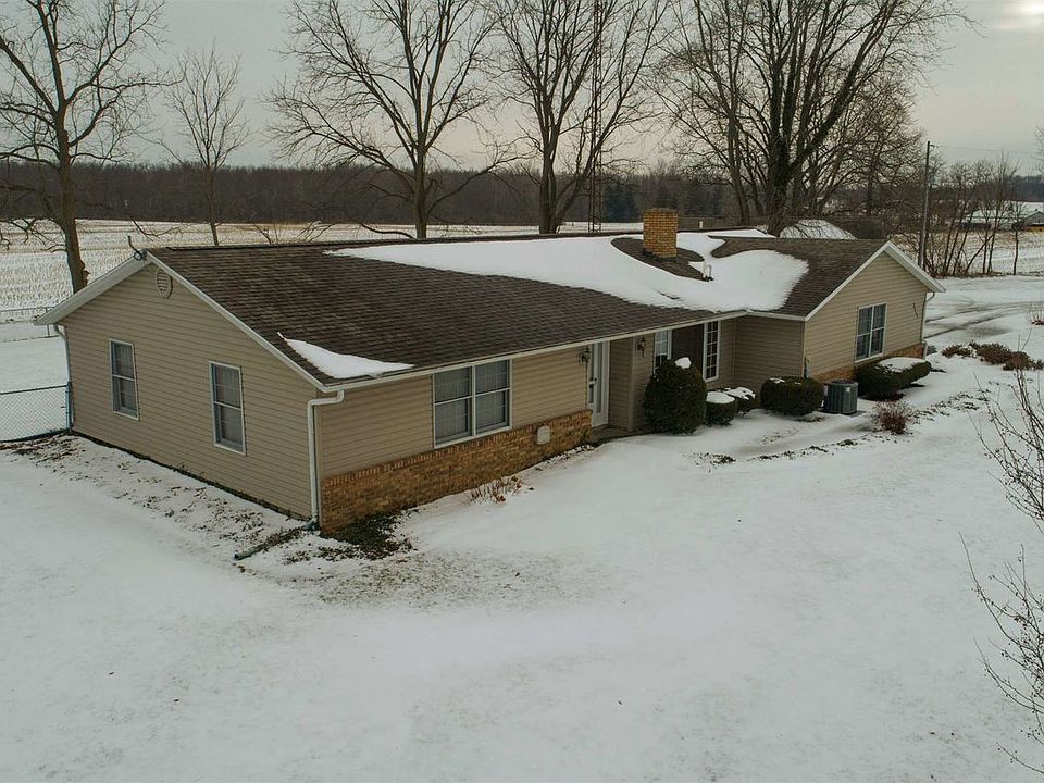 This impeccably maintained ranch on 3.5 acres has so much to offer! The huge family room has a gas fireplace and a large picture window, and is adjoining the dining area that overlooks the backyard. The bright and cheery kitchen is open to the dining area, and there is a generous pantry just inside the adjacent laundry room. Both bedrooms are spacious-- the master is 18' x 14'! There are two full bathrooms-- one was updated with a walk-in shower and new vanity with solid-surface vanity top and sink. The entire home is filled with so much natural light! Not only is there an attached two-car garage, but there is also an oversized detached garage that can be used to store additional vehicles and equipment or make it into a workshop or man-cave-- the possibilities are endless! A garden shed offers even more storage, and has an attached small kennel area behind it. The fully-fenced backyard has a patio area, and overlooks the pristine farm fields that surround it. The property is peaceful and tranquil, set far back from the main road, that you will feel like you are truly in the country, while still being conveniently close to both Fremont and Angola amenities.