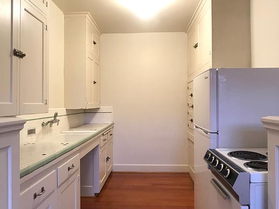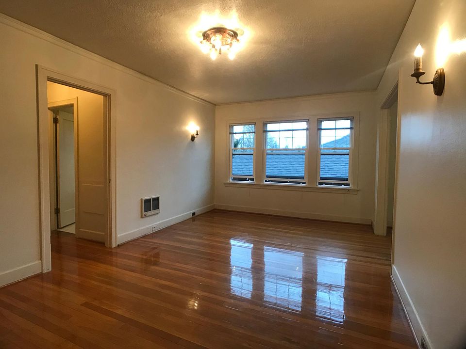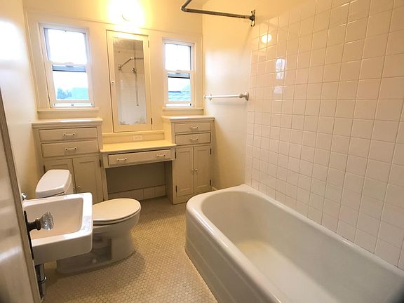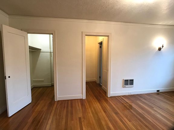 Spacious vintage studio apartment with original cabinetry and built-ins throughout the space. Two closets + dressing cabinet, six west-facing insulated windows, full kitchen with dining area, full bath with tiled shower and in built-in vanity. Hardwood floors throughout + vintage fixtures. No smoking in building or on premises Water, sewer and garbage included renter pays electricity and internet directly to provider Cats allowed, one per apartment sorry ~ no dogs Parking is all on-street (one garage available for $200/month)