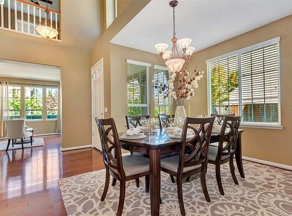 Complete info: http://3652sandalfordway.AgentMarketing.com - Looking for a spectacular home in the school district rated #29 in California by U.S. News & World Report? http //www.usnews.com/education/best-high-schools/california/districts/san-ramon-valley-unf-104159 (Note Check with school district for enrollment criteria.) Is newer construction a priority? You have found it. Walk in the front door and the hardwood flooring leads to the living room, dining room and kitchen. The entry area rises to the two story ceiling. The intimate living room is perfect for entertaining your guests. Imagine enjoying special meals together in the dining room. The gourmet kitchen is a chef's dream, with granite tile counters, built-in gas range, extensive cabinets and a spacious pantry. Appliances, including the refrigerator and dishwasher are all stainless steel. An island provides a convenient work space - perfect for teaching youngsters the fine art of making chocolate chip cookies. Imagine creating gourmet delights for family and friends. The family room is spacious and includes a gas burning fireplace with a stone mantel. One bedroom is on the main floor, perfectly situated beside a full bathroom with a shower over the tub. Upstairs are three more bedrooms and a loft. Located at the rear of the home for privacy, the master bedroom has a view out to the open hills behind the Windemere community. The walk-in closet is complete with a custom organizer system in the en-suite bathroom which includes separate sinks, oversize oval tub, a separate stall shower, and a water closet room. Dual zone air conditioning control also conveniently located in the master bedroom. The junior bedrooms share a Jack and Jill bathroom which includes twin sinks and a tub/shower combination. The loft at the top of the stairway could be your office, children's play area or whatever works for your family. The laundry room, complete with sink and storage cabinets, is also at the top of the stairway. Washer and dryer are included. The professionally landscaped back yard is sure to please. The patio beckons as the evening shadows lengthen. It's the perfect place to sit and read a book, play games with children or entertain guests. There is room for your private vegetable garden or space for a possible spa. The house is within an easy walk to Hidden Hills Elementary School and Hidden Valley Park. It is less than one mile to Dougherty Valley High School, the Aquatic Center and Performing Arts Center.