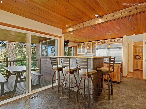 Need dual family living? This is it! Two homes-side by side,one attached wall, each w/own garage. Almost all 1 level living.Perched on bluff w/views of the Sandy River on 2.24 acres. Gorgeous home w/extensive remodel. New roof mn hse,Hickory cabs,Tile floor in Din rm/kitchen.Concrete counters,lrg island,Viking cooktop,Dbl ovens,SS applcs, Updated windows,Cedar ceilings, dinrm. Acacia bdrm flr.New plumbing/Ht pump. Mn hse new wtrhtr.Lrg barn-concrete flr,new roof,office in loft.Outdoor kitchen.